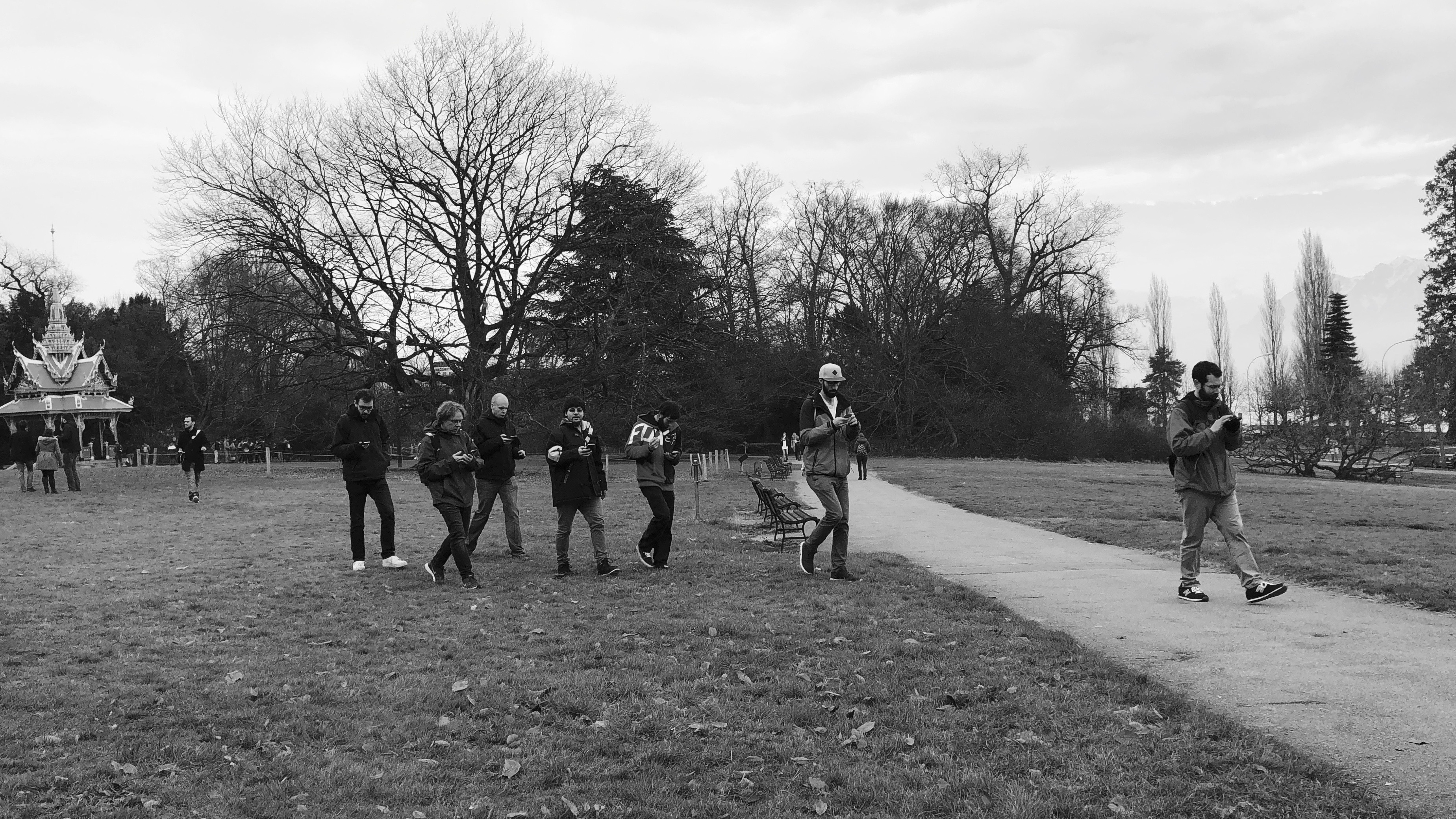 People moving around together and communicating with each other while playing Pokemon Go